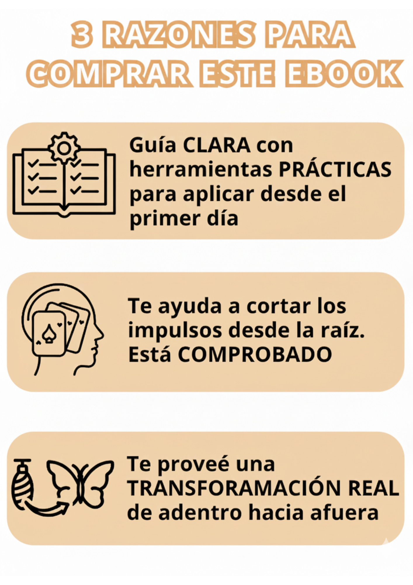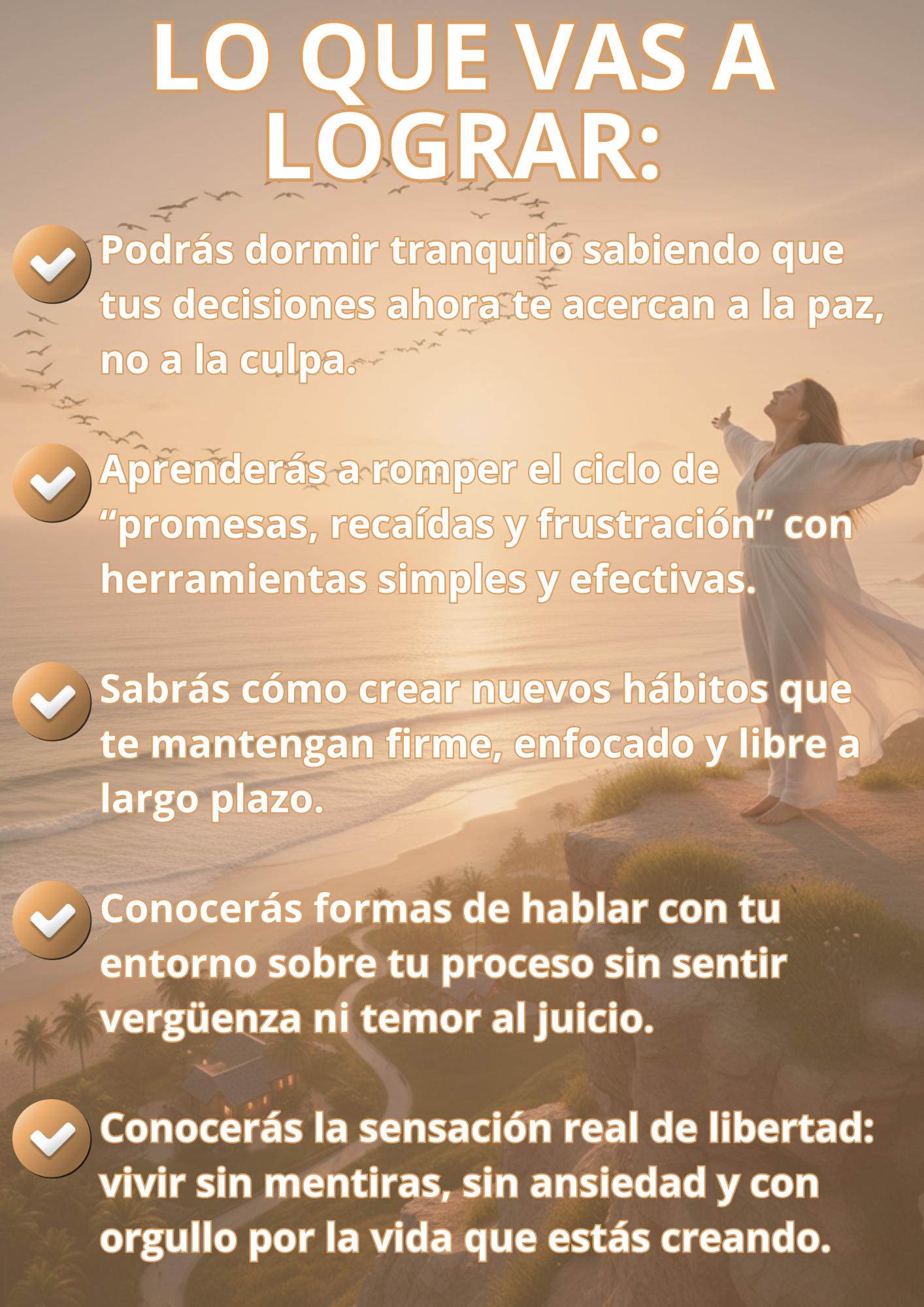 Justamente este e-book es para vos. No se trata de fuerza de voluntad, sino de entender cómo funciona tu mente y aprender a detener el ciclo desde adentro. Acá no vas a leer frases motivacionales vacías, sino pasos concretos para lograr un cambio real.
